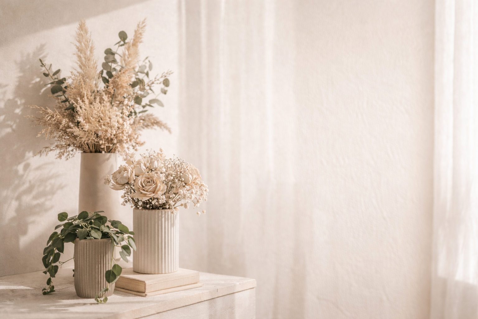 Soft, romantic florals curated to add warmth and refined beauty to any space — perfect for shelves, tables, and quiet corners.